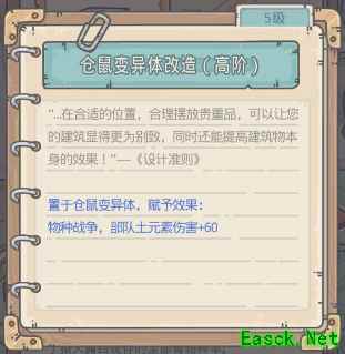 置于仓鼠变异体,赋予效果: 物种战争,部队土元素伤害+60