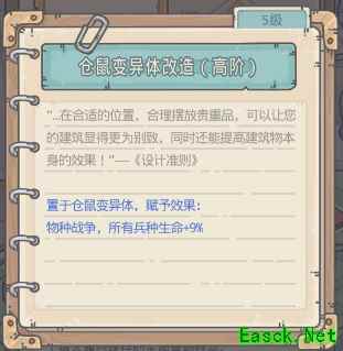 置于仓鼠变异体,赋予效果: 物种战争,所有兵种生命+9%