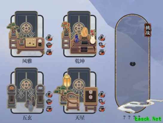 《未定事件簿》点墨斋锦囊位置攻略点墨斋乾坤密码和锦囊: 陪同:左然,钥匙:上面房间下方台子的阳鱼符,锦囊:下面房间上方台子,陪同房间兑坤离巽密码:7294,主控房间乾坎艮震密码:6183 点墨斋五玄锦囊及密码: 陪同:莫弈,上面房间:左选土、右选火,下面房间:左上选金、左下选金、右上选木,藏品:上面房间右边古琴八卦照片,锦囊:上面房间左边古琴,通关门:在上面房间中间的画屏后 点墨斋风雅锦囊及密码: 锦囊:上面房间左下角桌子,密码:1565