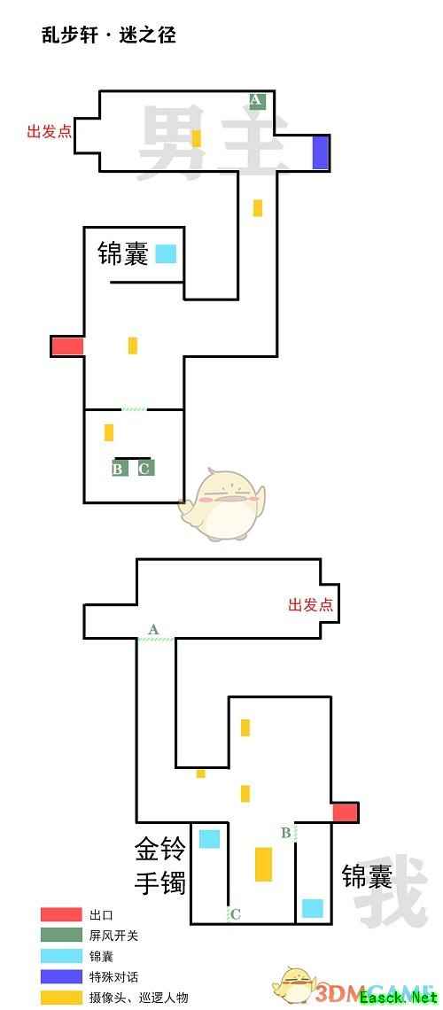1、乱步轩迷之径关卡分为男主和玩家两个视角,玩家需要操控自己的角色在地图中寻找各个线索找到出口通关才行。 2、不知道怎么过这关的玩家可以参考上图的平面版图,按照各个线索的位置去触发对话找到锦囊完成任务通关。 以上就是小编带来的《未定事件簿》飞雪落红尘乱步轩迷之径通关攻略,更多相关游戏攻略,请关注手游网。 本文内容来源于互联网,如有侵权请联系删除。 |