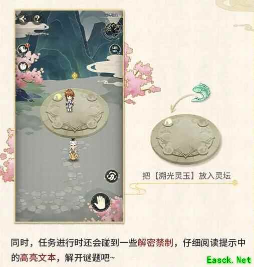活动期间,完成「黎渚之途」主线阶段任务后,每日04:00将刷新「灵玉之聚」每日任务,任务包括降服妖兽、聚灵构阵、净化腐秽、暗寻奇珍等玩法。仙友可通过完成任务获得【溯光灵玉】,收集指定数量的【溯光灵玉】后方可开启下一阶段的「黎渚之途」主线任务