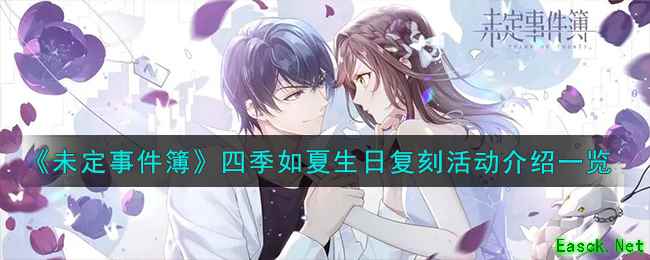 未定事件簿是一款十分火爆的手游,其中未定事件簿四季如夏生日复刻活动将在本月下旬开始,参与启示可获得SSR思绪,许多玩家想知道具体怎么样,今天小编就给大家带来未定事件簿四季如夏生日复刻活动介绍,希望对感兴趣的玩家有所帮助,大家一起看一看吧。