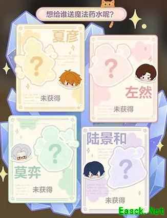 2、男主专属魔法药水 夏彦:+咏唱咒语+相机胶片 = 思维魔法 左然:+法术能量+法典的一页 = 平衡魔法 莫弈:+咏唱咒语+红心A扑克 = 心灵魔法 陆景和:+法术能量+油画颜料 = 无限魔法