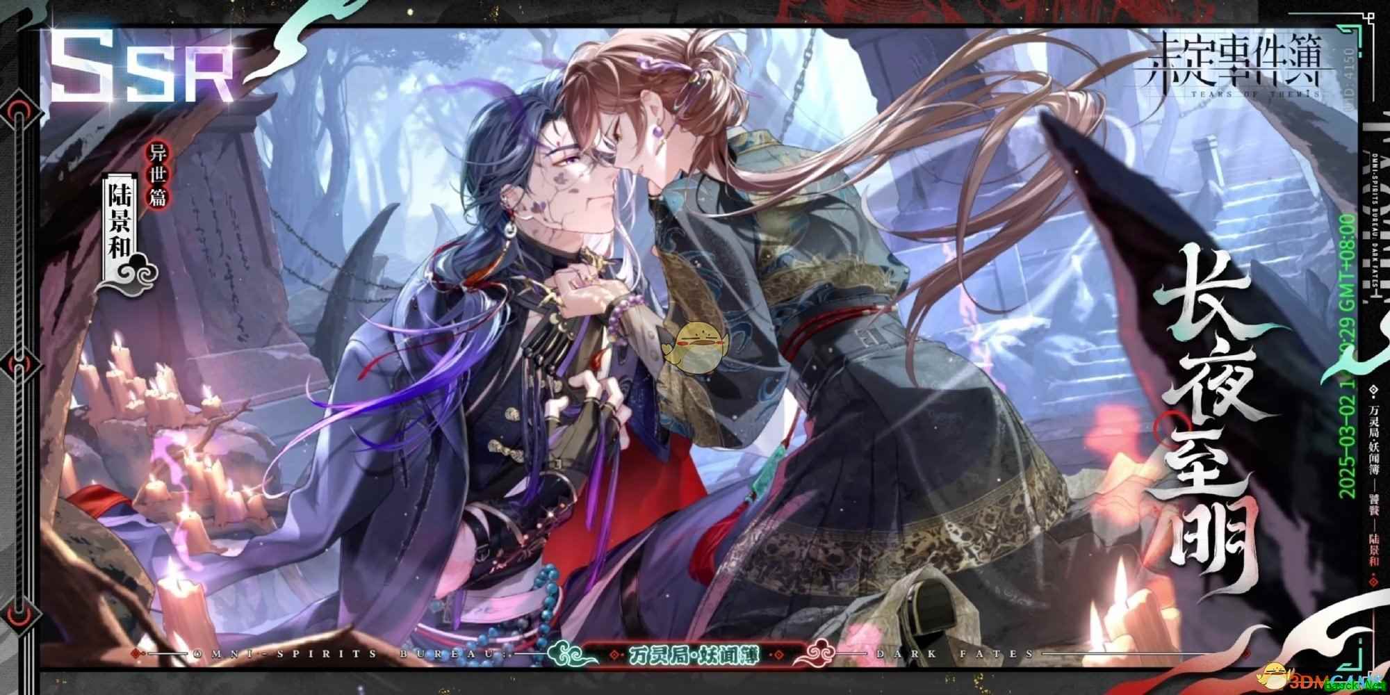 未定事件簿陆景和长夜至明怎么样?【长夜至明】 1月21日,大型中式奇幻活动「万灵局·妖闻簿」开放,活动限定陆景和SSR【长夜至明】获取概率提升 “姐姐,我真的好舍不得你……等我成为怪物以后,我还能记得你吗?” 饕餮之徒贪得万物,唯有爱能化解其欲—— “……如果我能活得再久一点,就能再多看你几眼。 我本就没什么时间,所以我并不畏惧死亡,有你在……我更不怕了。”