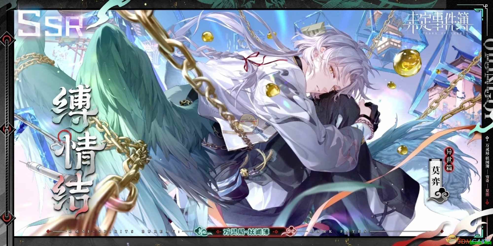 未定事件簿莫弈缚情结怎么样?【缚情结】 1月21日,大型中式奇幻活动「万灵局·妖闻簿」开放,活动限定莫弈SSR【缚情结】获取概率提升 “我很满足我们现在的状态。 不觉得很特别吗?仅存在于我们之间,仅我们知晓,仅我们可见的关系。” 世界颠倒虚妄,灵魂相结共历轮回—— “再抱抱我吧…… 像我这样自私的人,本来希望你一直记得我才好。可现在,我不想你记得了。天亮以后……忘了我。”