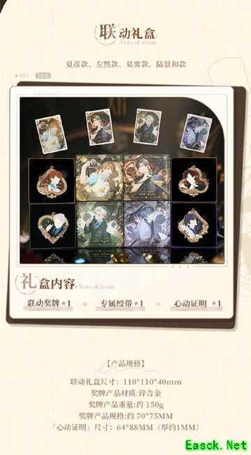 未定事件簿keep联名活动周边是什么?答:联名周边准备了联动礼盒,具体内容如下所示: 1、联动礼盒包含夏彦、左然、莫奕、陆景和四款; 2、每个联动的礼盒都包含了联动奖牌*1、专属绶带*1、心动证明*1; 3、另外联动礼盒是奖牌组专属的,需要花费49元报名完赛获取的;