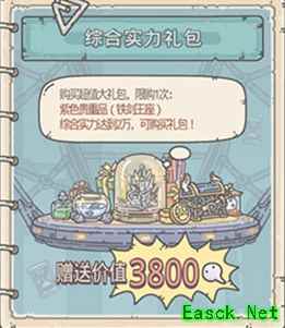 综合实力礼包奖励介绍: 这个礼包的奖励十分的丰富。2000白蝌蚪就能买到一个紫色的贵重品——铁剑王座、 这个贵重品性价比还是非常高的,能够提升玩家10000点综合实力的同时,增加蜗牛的5点攻击和防御力。 除了贵重品,还能获得6w点黑蝌蚪,100个绿色炼金试剂、200个装备宝箱还有1400个白蝌蚪。 总的来说,玩家只花费了600点白蝌蚪就买到了这么多东西,性价比可以说是非常的高了,而且对于蜗牛来说的提升也是非常大了。 非常推荐大家购买这个综合实力礼包,但是不要使用128rmb购买,这反而得不偿失,使用白蝌蚪购买才划算。
