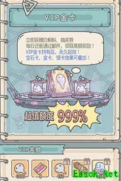 VIP金卡奖励介绍: 1、购买金卡的玩家可以直接获得1000白蝌蚪和8张抽奖券。 2、购买金卡的玩家每天都可以获得150白蝌蚪、大师手札、1小时供奉加速时间 3、金卡永久有效。