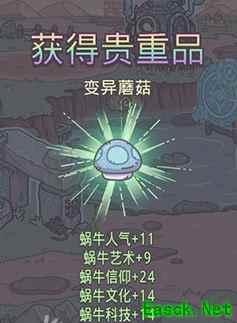 3、变异蘑菇的效果可以让蘑菇园产出的神奇蘑菇的概率提高2%,还是永久有效的,可以说是一件对我们帮助很大的贵重品了。