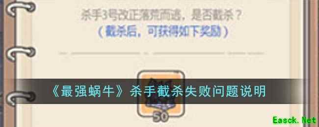 《最强蜗牛》杀手截杀失败问题说明杀手截杀失败情况介绍: 1、如果玩家们的实力还没有达到截杀的地步,可以先提升自己的战力,然后再考虑截杀。