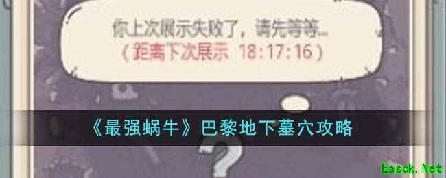 最强蜗牛巴黎地下墓穴展示什么物品?最强蜗牛中,不少玩家们在挖掘地缝到66层的时候会遇到一个疑惑,那就是需要我们在巴黎地下墓穴中展示一个道具,但是很多玩家尝试放置道具之后都提示说展示失败了,那么我们到底应该放置什么道具呢?下面小编就为大家介绍一下,不知道放置什么道具的小伙伴一起来看看吧。