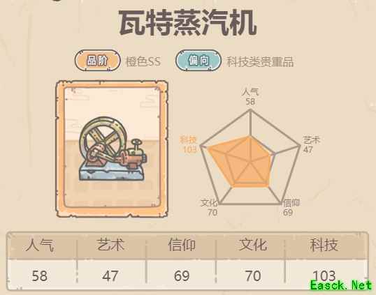 二、镶嵌技能 1、瓦特蒸汽机置于石材工坊,赋予效果:最大容量+30% 2、瓦特蒸汽机置于英伦博物馆,赋予效果:英伦探索,15%概率获得双倍绿色卡片 3、瓦特蒸汽机置于英伦博物馆,赋予效果:英伦探索,15%概率获得双倍白色卡片 三、获取途径介绍 1、抽奖可获得瓦特蒸汽机 2、八卦炉许愿可获得瓦特蒸汽机 3、开启宗师手札可获得瓦特蒸汽机