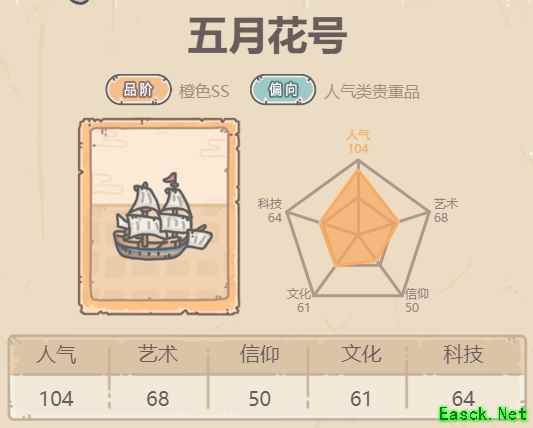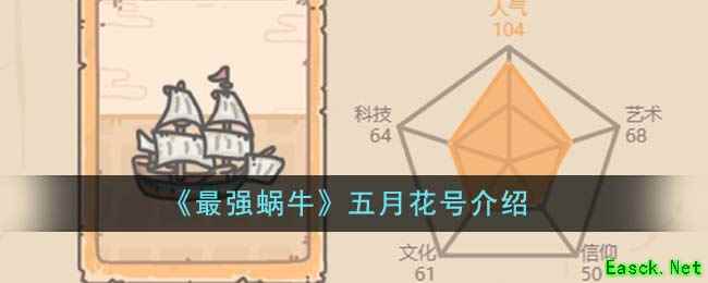 最强蜗牛五月花号怎么样?最强蜗牛中,五月花号是一个橙色SS级品质人气类的贵重品,五月花号可以有效的增加我们蜗牛的攻击和追击的属性加成,而且在我们探索的时候还能增加我们获得黑蝌蚪的数量。这个贵重品的属性是什么样的呢?下面小编就向大家介绍一下五月花号相关内容,感兴趣的一起来看看吧。