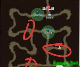 富金矿刷新位置介绍: 图为富金矿刷新点,三层矿洞有区域毒debuff与全程炎热debuff;