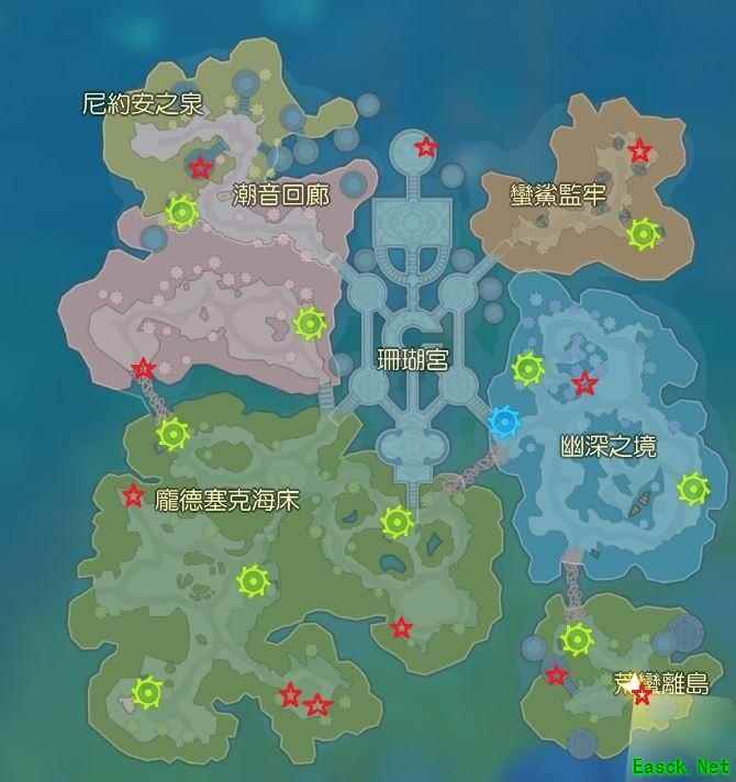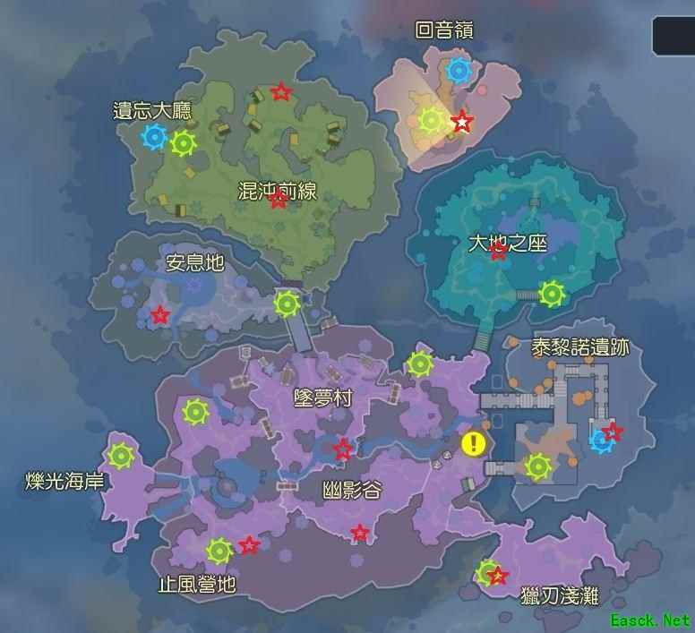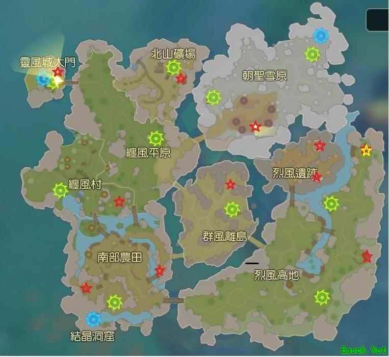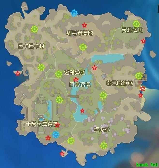 《海岛纪元》全地图黑市商人位置一览【缠风峡湾位置图】 地图最右边有黄+红星的是龙焰平塬版本(LV90)最新的点