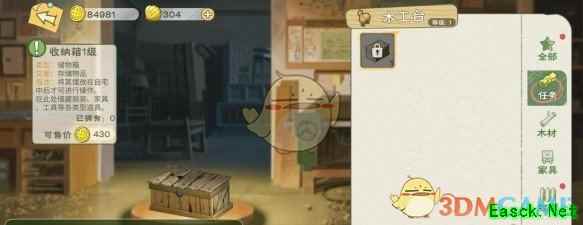 三、收纳箱 玩家可以根据任务解锁收纳箱图纸,建造收纳箱。一共有五级,收纳箱可以存放道具。