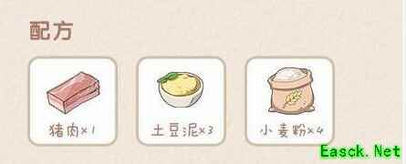 《小森生活》咖喱猪扒饭食谱配方一览配方: 猪肉*1+土豆泥*3+小麦粉*4