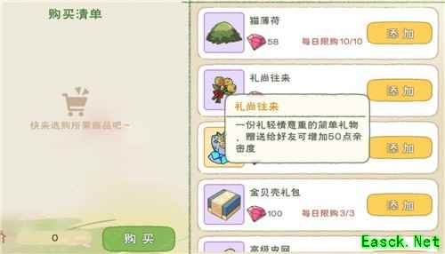 《小森生活》亲密度提升方法介绍一、提升方法: 提升亲密度最快的方法就是通过送礼,玩家可以在商城购买礼物,礼物需要花费红钻,其中礼尚往来的鲜花可增加50点亲密度。心意之选的鲜花可增加100亲密度。