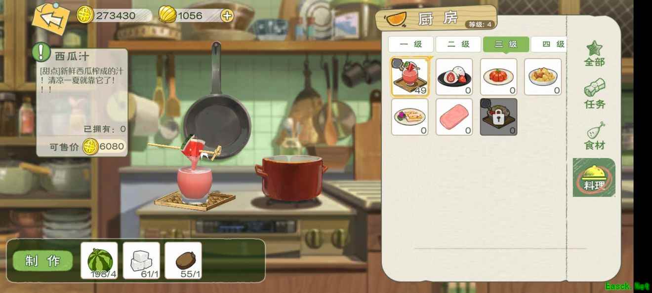 6、三级厨房囤西瓜甘蔗。 7、四级厨房的料理不推荐做,可以把每天的南瓜粥做完就行了,然后继续做西瓜汁。 8、五级厨房料理也不做。 9、矿精是个好东西,可以在木匠处兑换家具图纸,前期矿洞三层的矿砂可以卖掉应急。 10、其他的存起来,不存也没关系可以在矿神处用贝壳购买。 11、提一下,衣服图纸在裁缝处用树脂兑换,树脂不够可以直接祈愿。 以上就是小编整理的关于《小森生活》最划算材料介绍的全部内容,更多游戏攻略请持续关注手游网! 本文内容来源于互联网,如有侵权请联系删除。 |