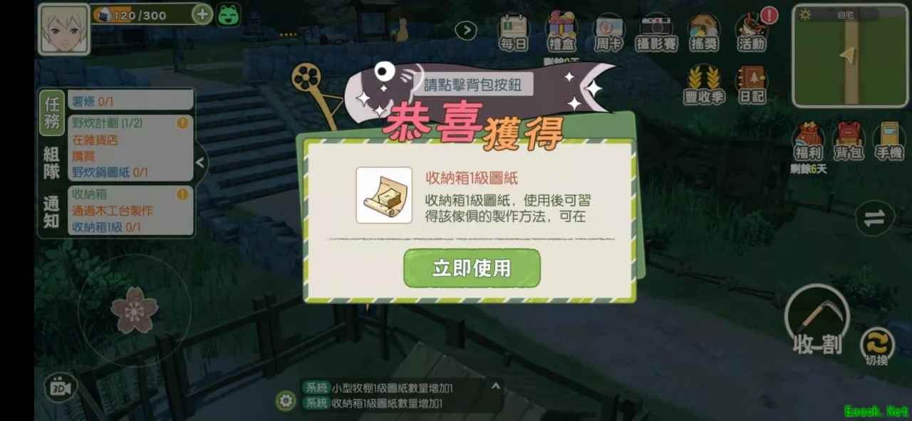 《小森生活》收纳箱制作方法收纳箱图纸获取方法介绍: 1、收纳箱图纸需要完成主线任务“畜牧计划”才能获得。 2、当玩家完成主线任务后,就能在背包中找到收纳箱图纸。(如果背包满的,可以在邮件中找找)