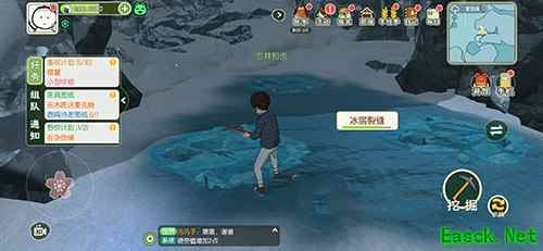 需要玩家穿过木林峡谷,然后就可以来到雾雪峰,钓鱼点位置如图所示,比较容易找到。需要玩家使用稿子凿冰层裂缝,随后使用鱼竿钓鱼即可。