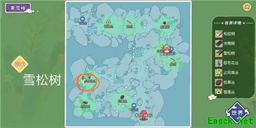 雪松树就位于【雾雪峰】的忍冬花丛那里,具体分布区域如上图的圈圈所示,里面可以找到两颗雪松树。注意这个雪松树丛形状上和松纹树长得一模一样,不仔细看很容易认错。
