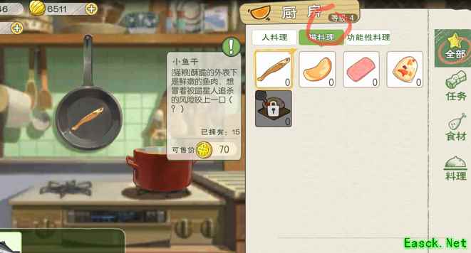 《小森生活》猫布丁图纸解锁方法这个猫布丁你可以在厨房料理里有个4级料理,可以直接做猫布丁! 【选择任务显示没解锁,选择猫料理显示解锁】如图