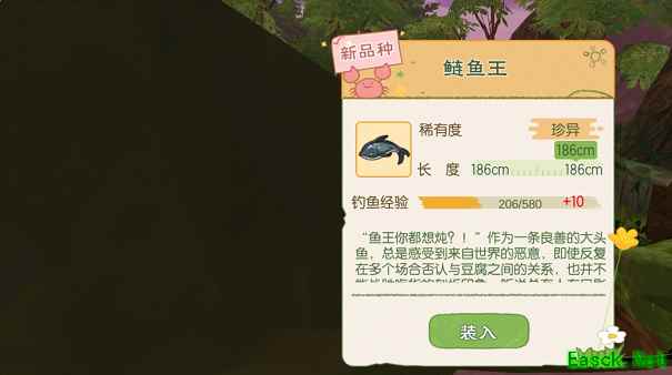 3、鱼王送一个,成功钓到鲢鱼王奖励是特级收纳箱,加80格子的仓库容量