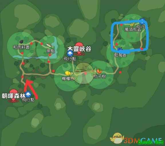 《小森生活》闪灯果实位置介绍【位置介绍】 木灵峡谷红点位置,并且每一个位置可以采集多次。 蓝圈,是台服较多位置(后经测试绕盒雨子和鱼点的圈也很多)包括新版,国服90%用这版(版本一样) 箭头是网上的玩家蹲了近三小时(玄鸟)采五株灯闪果的位置,平均采五个盒雨子,会在原地刷出一次灯果(猜测所有位置的盒雨子都可以,蓝莓同理)