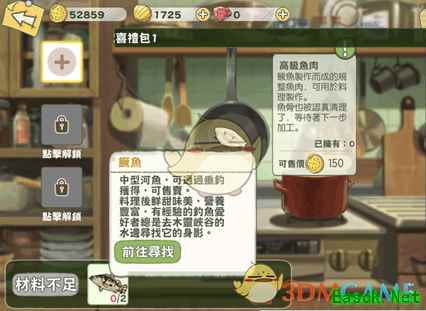 《小森生活》高级鱼肉制作攻略【制作攻略】 高级鱼肉需要使用2条鳜鱼制作。 鳜鱼栖息在木灵峡谷的鱼点中,来到河边的鱼点后将工具切换成钓鱼模式就可以进行垂钓,由于钓鱼时随机钓上不同品种的鱼,所以想要钓到指定的鳜鱼就需要一定的运气和时间啦。 集齐鳜鱼后就可以在厨房将鱼烹饪成高级鱼肉。