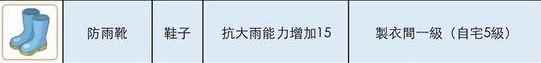 《小森生活》防雨靴获取攻略【获取攻略】 需要3兔绒卷、2和雨籽以及3砂白树脂在制衣间制作 【作用介绍】 防雨靴:抗大雨能力增加15