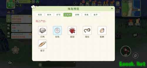 采集物: 贝类:贝壳、蛏子、蛤蜊 其他:珍珠、珊瑚、海虫