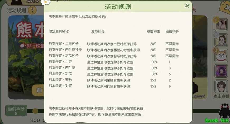 《小森生活》对虾获取方法介绍对虾获取: 联动活动期间钓鱼时概率获得 活动需要捐赠限定物品道具,获得积分,兑换奖励