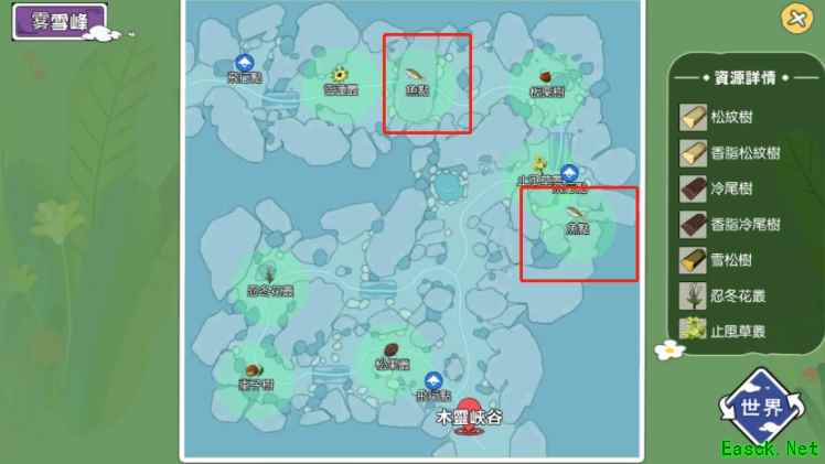 2、在进入“月影森林”之后继续前进,直接进入到下一个地图“木灵峡谷”,最后继续前进即可到达最终目的地“雾雪峰”。这一套路线不算太绕,不过需要注意路上有些时候会刷出好东西,最好还是给拿走的好。 3、雾雪峰一共有两个钓鱼点,一个分布在中上方位置,另外一个分布在中右方位置。