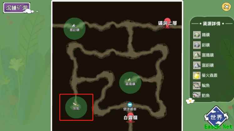 三、沉睡矿洞: 1、玩家首先需要通过起始地点进入“朝晖森林”,然后要选择进入“白露岭”。另外一个路口“月影密林”是进入“雾雪峰”的路线,大家别搞错了。 2、在进入“白露岭”之后继续前进,直接进入到下一个地图“暮夕深林”,最后继续前进即可到达最终目的地“沉睡矿洞”。这一套路线不算太绕,不过需要注意路上有些时候会刷出好东西,最好还是给拿走的好。 3、沉睡矿洞一共只有一个钓鱼点,分布在地图左下角的位置。