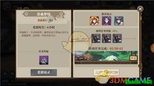 每一个委派任务都有自己的推荐镜灵,是有相应的推荐镜灵可以增加额外的任务奖励哦,玩家们一定要记得使用推荐的镜灵以获取到额外的经验奖励,玩家们如果嫌时间太久,还可以通过使用龙玉加速委派任务的完成。
