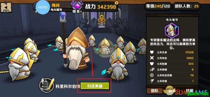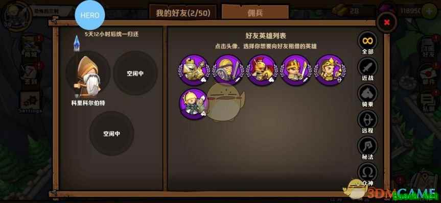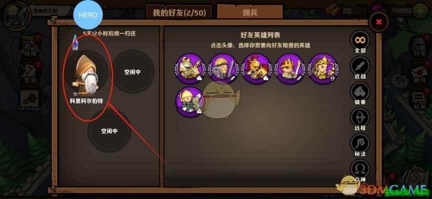 归还好友佣兵 点击想要归还的英雄,会弹出归还界面
