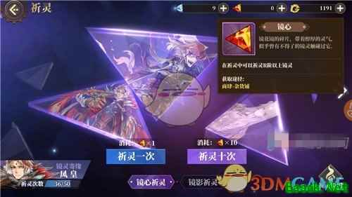 两种祈灵区别介绍 镜心祈灵 镜心祈灵是使用镜心进行祈灵的抽卡方式,镜心需要使用200龙玉兑换得到,是比较昂贵且稀有的道具,镜心祈灵中SSR的出率为2.5%、SR出率为19.5%,是出率比较高的一个卡池。