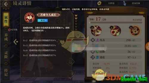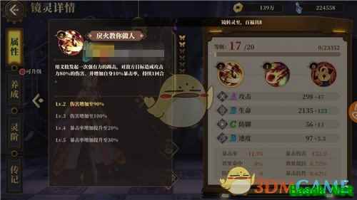 毕方技能介绍 戾火教你做人:毕方的普通攻击,有着非常不俗的技能伤害,而高等级的戾火教你做人不经可以增加技能伤害还可以增加镜灵的暴击率,是一个非常好用的普通攻击。