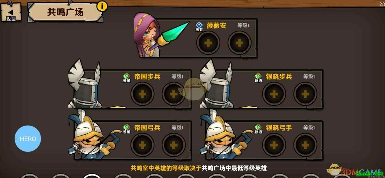 二、使用方法 在小小军团2手游中,共鸣水晶分为低级共鸣和高级共鸣两种共鸣方式。 1、低级共鸣:选取等级最高的5名英雄,每个英雄可同步2名其他英雄的等级 2、高级共鸣:选取等级最高的5名英雄,加到共鸣中的英雄与选取的5名英雄中等级最低的一致
