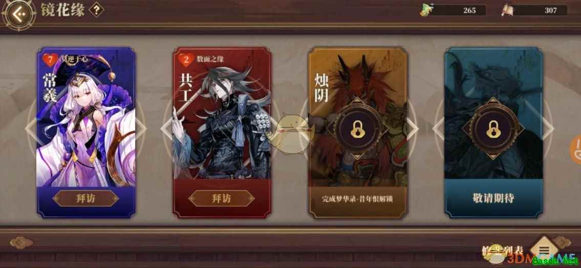 镜花缘系统玩法介绍这个系统主要可以给玩家看一些镜灵故事、跟他们进行互动、换取资源以及提升战斗属性,感觉这个玩法也是非常增加大家对镜灵的好感,比如现在出的常羲、共工、烛阴都是现在的人气镜灵啊~ 镜花缘的开启条件比较简单,只需要在主线任务中完成相应的追忆剧情,完成后就可以解锁他们的居所进行拜访。