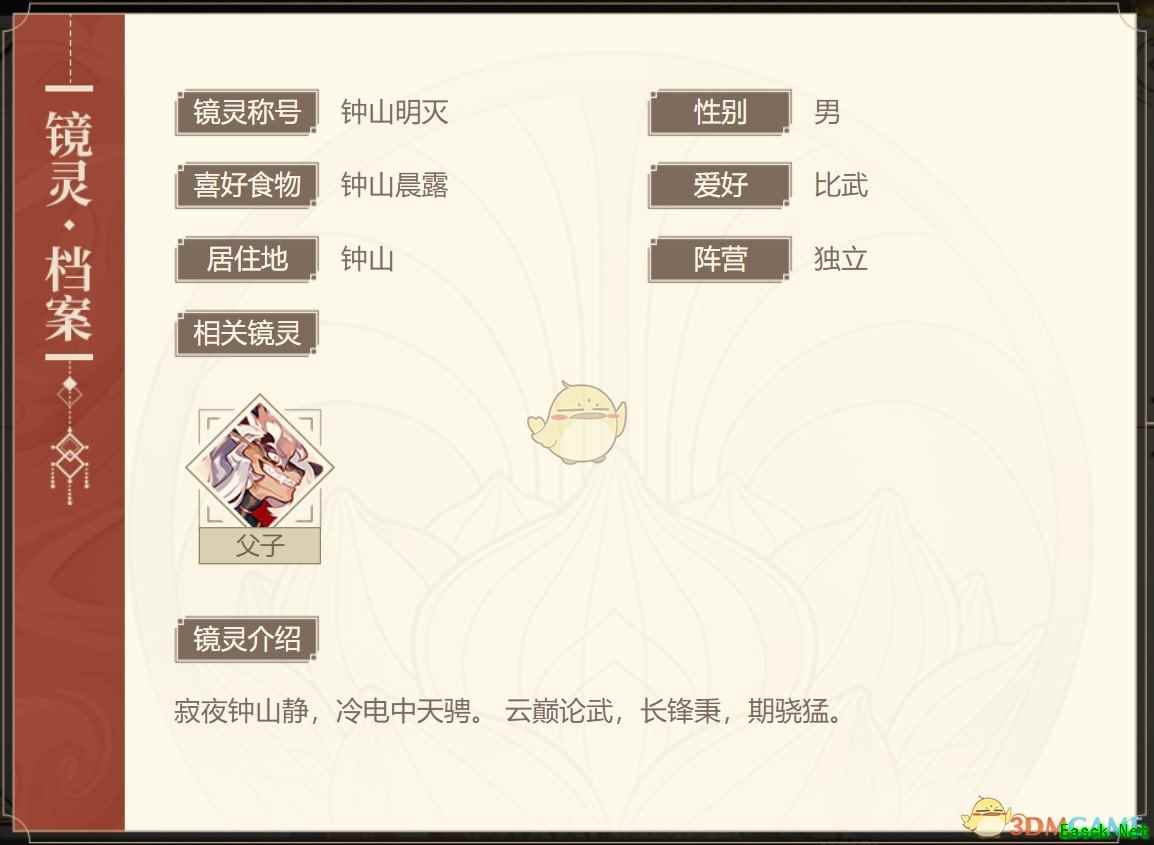 人物介绍寂夜钟山静,冷电中天骋。 云巅论武,长锋秉,期骁猛。 与大荒同生的钟山之神,毕生追寻着大荒最强的力量。烛阴此生惟愿与更强者一战,于武道上更进一步。