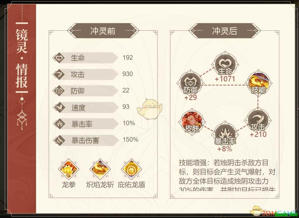 山海镜花游戏中烛阴是个ssr阶镜灵,在游戏中烛阴的立绘偏向霸气风格,估计不少玩家是非常喜欢的。接下来小编就给大家带来了烛阴属性技能图鉴介绍,快来一起看看吧! 小编推荐阅读:《山海镜花》镜灵图鉴大全