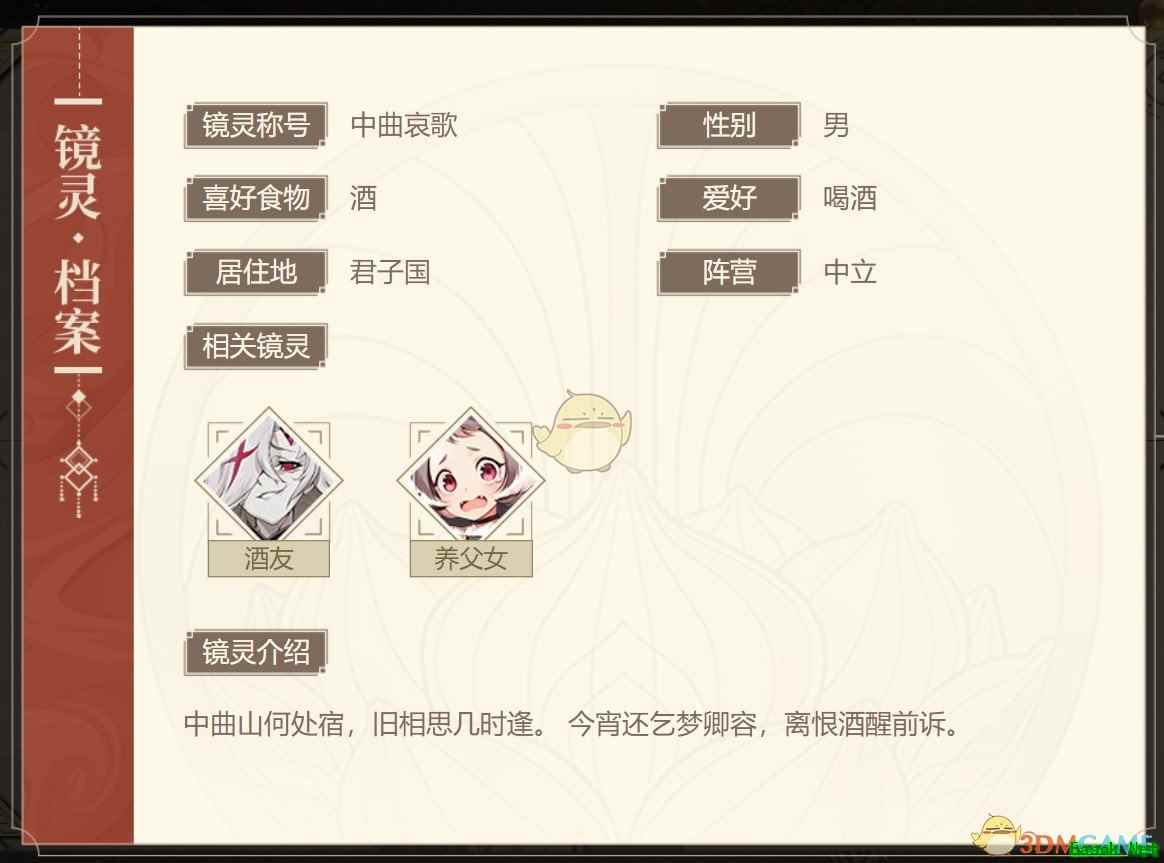 中曲山何处宿,旧相思几时逢。 今宵还乞梦卿容,离恨酒醒前诉。 驳曾经有过一个家,有自己喜欢的女人和他们的孩子。但是殃及中曲山的战火,葬送了她和他们尚未出生的孩子。 属性介绍