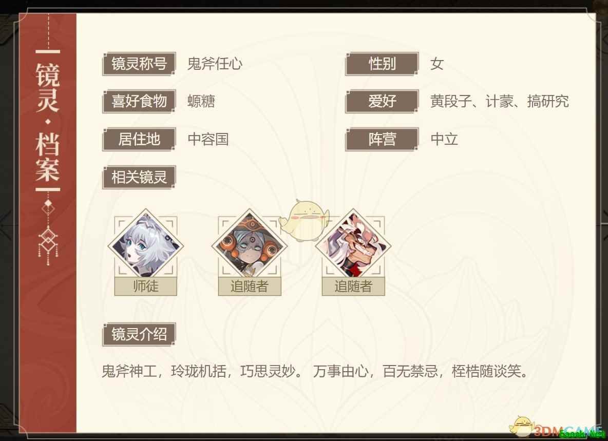 鬼斧神工,玲珑机括,巧思灵妙。 万事由心,百无禁忌,桎梏随谈笑。 属性介绍