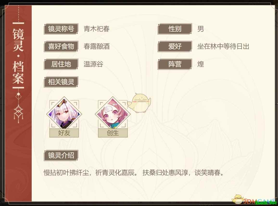 《山海镜花》句芒图鉴