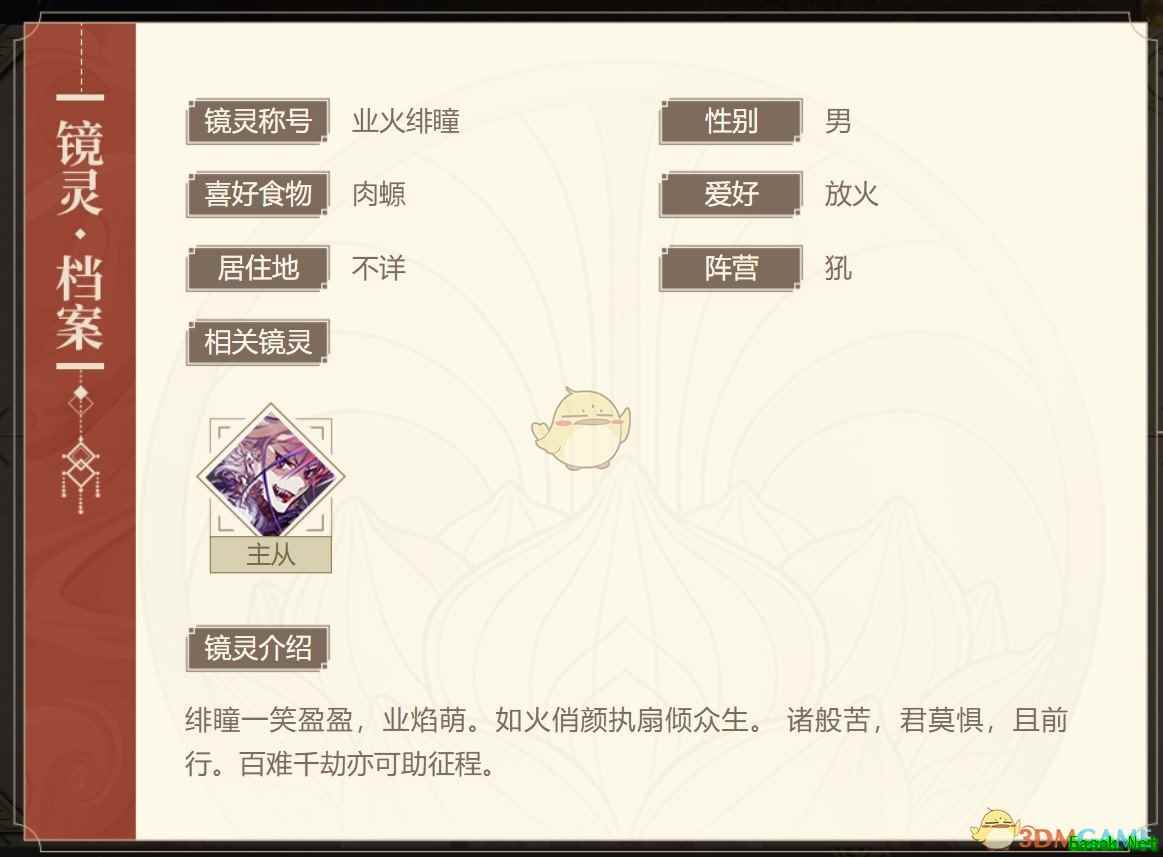 绯瞳一笑盈盈,业焰萌。如火俏颜执扇倾众生。 诸般苦,君莫惧,且前行。百难千劫亦可助征程。 强大而忘却了曾经的苦难与痛楚,转而变得极端疯狂,自认为是大荒的推手,以驱散人们的懒惰为使命。 属性介绍