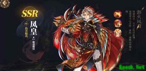 凤凰: 1、凤凰是一个可以对目标造成持续伤害的技能,并且技能是有AOE能力的, 2、同时凤凰的爆发伤害是很高的,可以在短时间在瞬间对目标造成高额的输出, 3、我们可以将凤凰作为阵容中的核心输出,同时如果可以好好培养的话是可以提升非常多的战斗力。