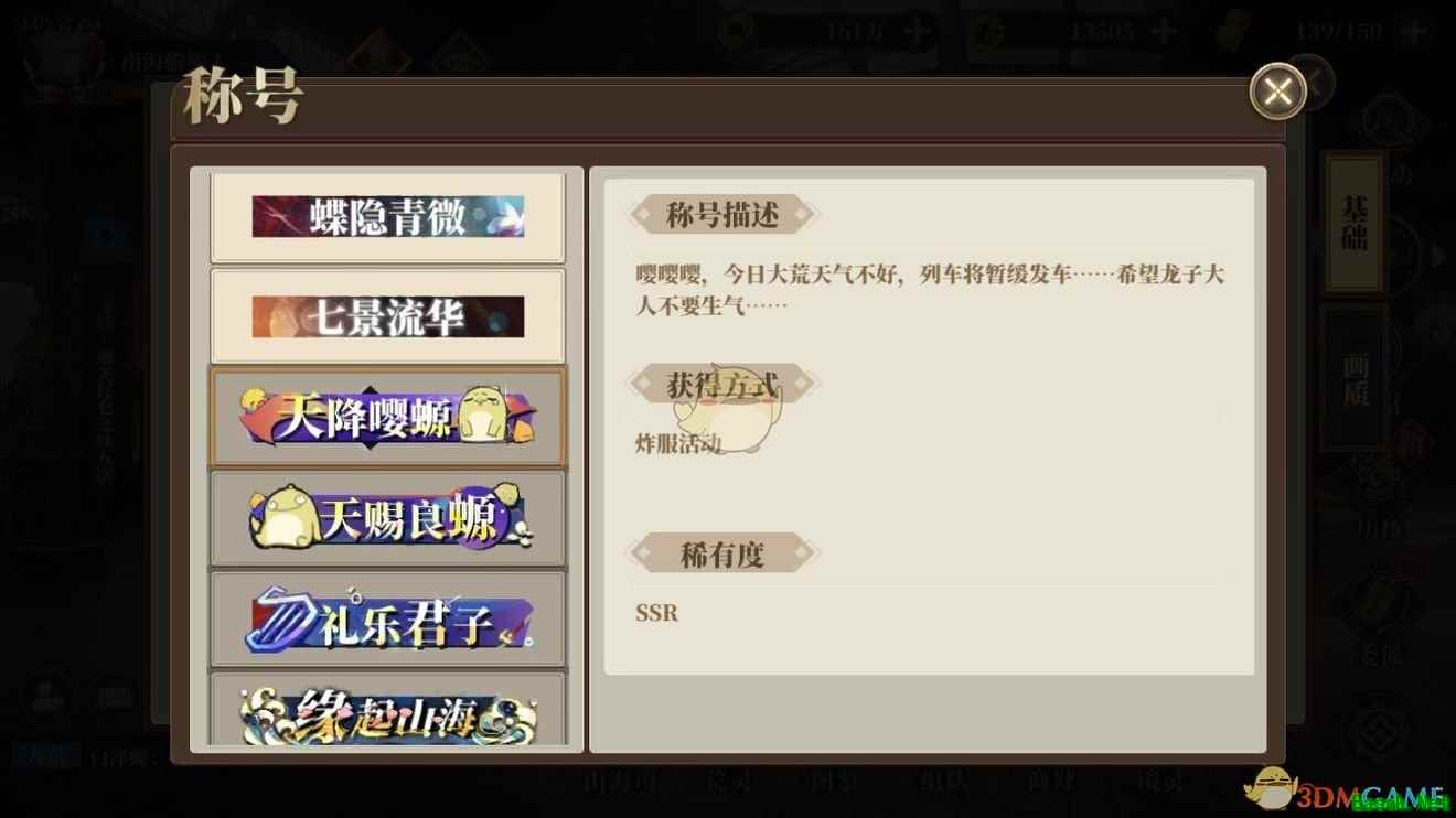 《山海镜花》称号获取攻略山海镜花目前一共有以下几种称号,它们的获取方法各不相同。 天降嘤螈(SSR) 炸服活动补偿 玄览中山(SR) 大荒战图周排行第4名~第10名奖励 复仇之羽(SR) 聆贝铺花费800聆贝购买获得 凤蝶倚霞(SR) 全图鉴三星奖励 七镜璇玑(R) 官网预约人数达到15万人获得