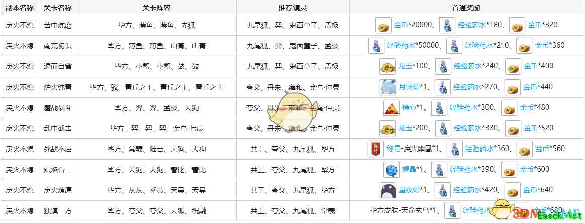 《山海镜花》异闻秘录通关攻略大全异闻秘录功能将于等级达到30级开启,玩家可通过“征战”界面点击“异闻秘录”入口进入 异闻秘录设有多个副本,每个副本通关后可获得对应镜灵的皮肤奖励。 异闻秘录设有较高难度副本,每个挑战副本中的镜灵技能都有特殊改变。 首次通关可获得通关奖励。通关后,重复挑战只可获得少量经验和金币。 异闻秘录:戾火不熄